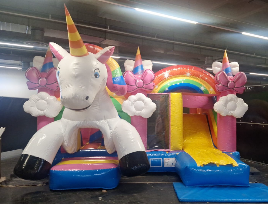 Is het een droom? Nee, het is het Rainbow Unicorn multiplay springkasteel!