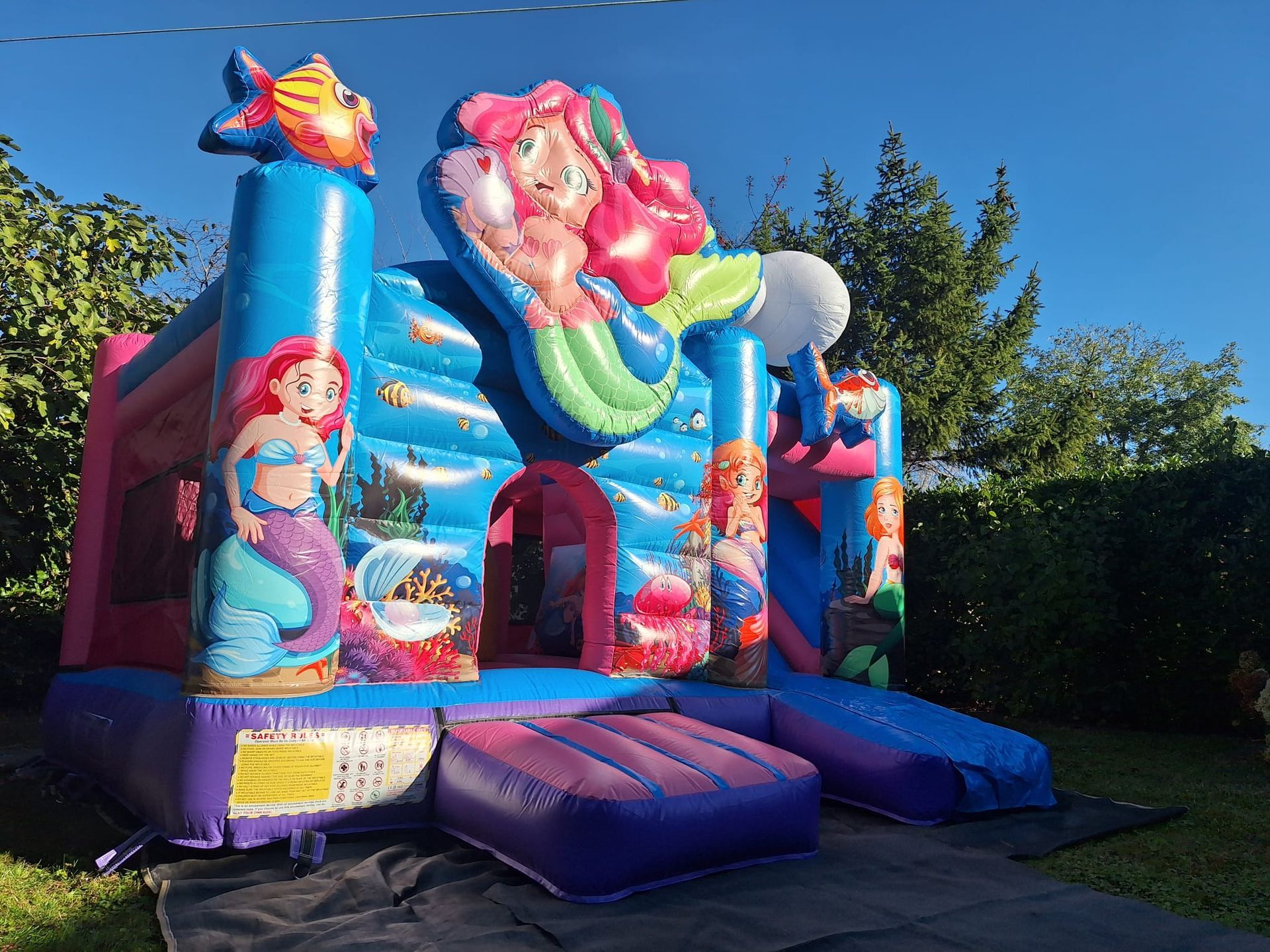 Ons Zeemeermin springkasteel is gearriveerd en het is een plaatje om te zien. Met zijn levendige kleuren en prachtige prints wanen de kids zich direct in de diepe oceaan tussen de vissen en koralen.